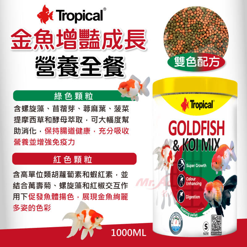 1.內含螺旋藻、苜蓿芽和軟體、甲殼類動物,高品質且易吸收的蛋白質,促進魚隻體態健康成長,是各類金魚完美的營養全餐。