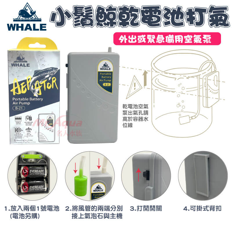 4.確保乾電池空氣泵出氣孔高於容器水位線。