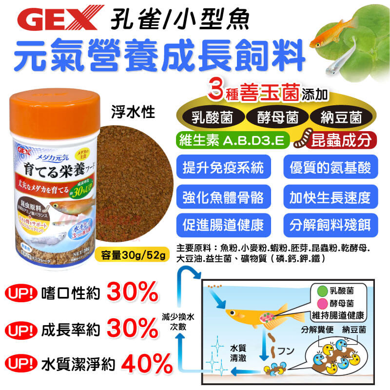 4.鈣和維生素D有助於強化魚體骨骼並可加快魚苗生長速度,為長期餵食小型魚的最佳主食。