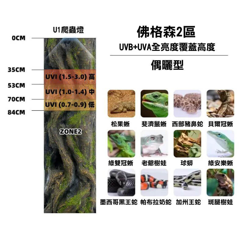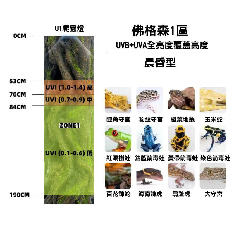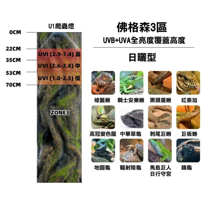 1. 模擬一天光照,依照所飼養的寵物提供不同波長(UVA、UVB)和強度的光,模擬日出、日照、日落的晝夜循環,以滿足其生理需求